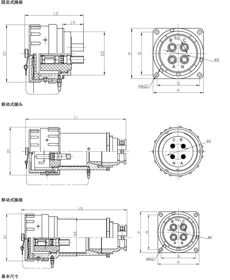 | YT-YZ-4/15 | 15A/400V/500V | 3P+N | 15A 移動式三相四極插頭插座 |